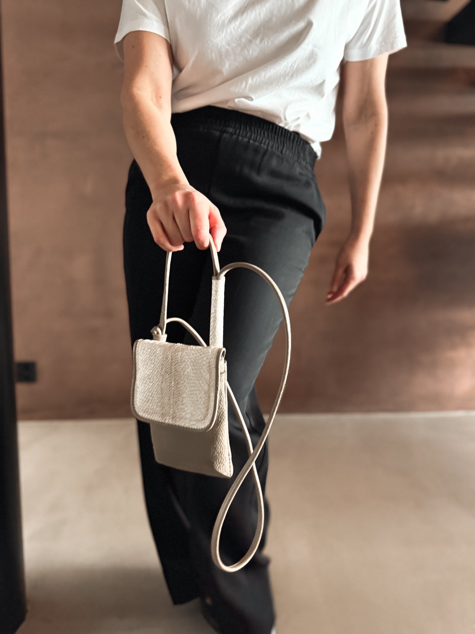 Eva Mini Laukku on täydellinen laukku, kun tarvitset mukaasi vain ja ainoastaan kaikkein tärkeimmät (puhelimen, korttikotelon, avaimet...). Laukussa on kolme tilavaa taskua. Eva Laukku on valmistettu Suomessa taituri-artesaanien käsityönä laadukkaasta lehmän - ja lohennahasta. Elegantti siluetti tekee siitä monipuolisen laukun eri tilaisuuksiin.