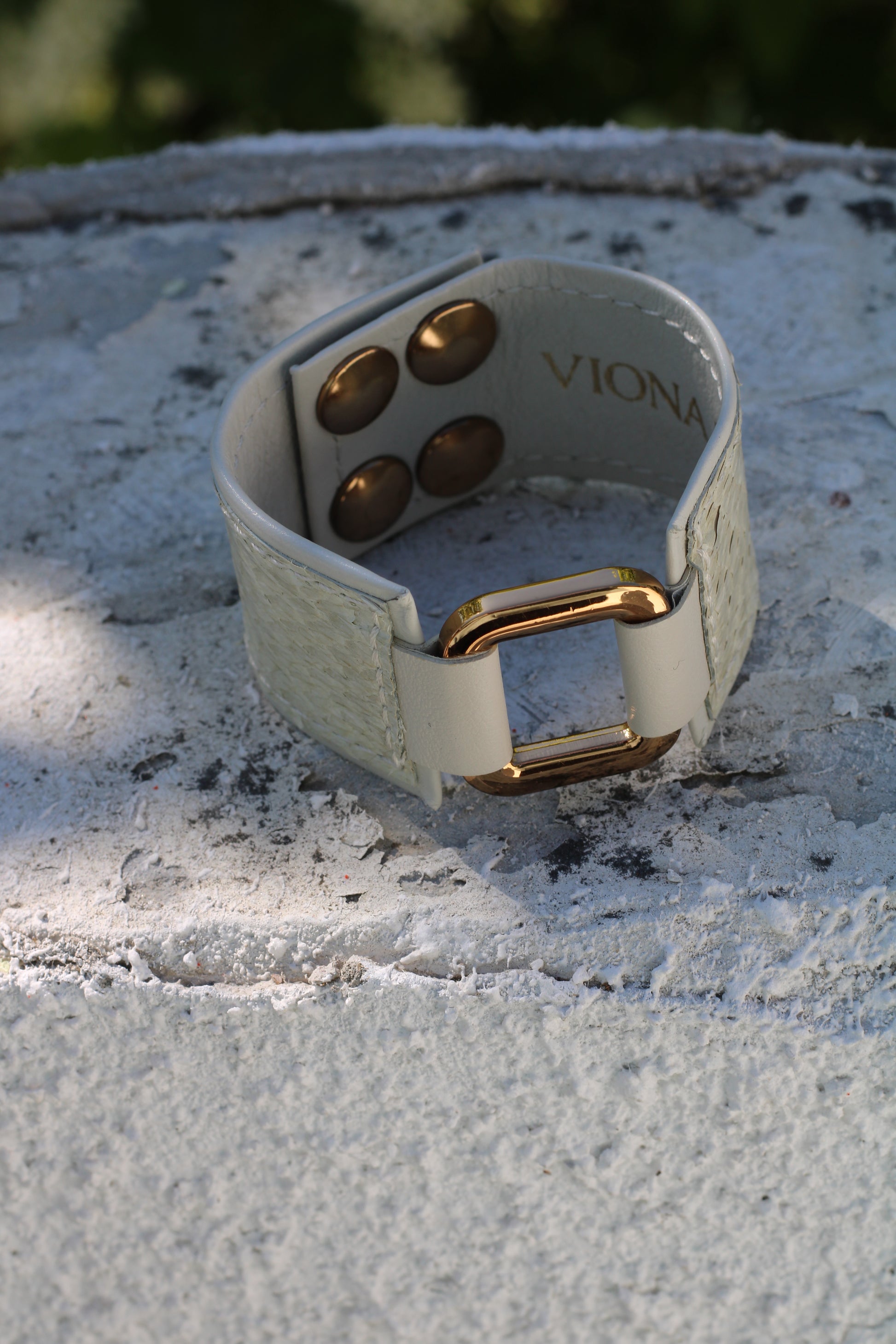 Materiaalit: lehmännahka (EU), lohennahka (Islanti), metalli (samakki, Italia)